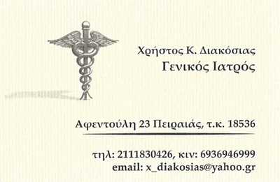 Δέχεται καθημερινά 08:30-14:00 & 17:30-20:30 εκτός Δευτέρας. Επισκέψεις κατ' οίκον.