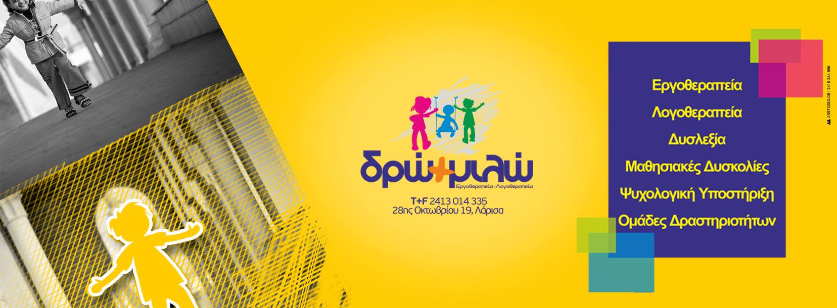 Το ''δρώ+μιλώ'' είναι ένα πρότυπο κέντρο εργοθεραπείας-λογοθεραπείας στο κέντρο της Λάρισας. Ενας νέος χώρος ζεστός και φιλόξενος, κατάλληλα διαμορφωμένος για να ανταπεξέλθει στις ανάγκεσ των υπηρεσιών που προσφέρει. Στελεχωμένο με έμπειρους και εξεικευμένους θεραπευτές διάφορων ειδικοτήτων (λογοθεραπευτές, εργοθεραπευτές, ψυχολόγους) συμβάλει στην πρόληψη, τη διάγνωση και την αντιμετώπιση των δυσκολιών.