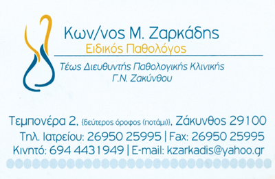 Ειδικός ΠαθολόγοςΔέχεται καθημερινά 09:00-14:00 & 18:00-21:00εκτός ΤετάρτηςΕπισκέψεις κατ΄οίκον με ραντεβού