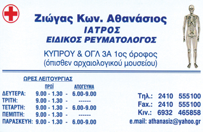 Καθημερινά πρωί 09.00 - 14.00Δευτέρα - Τετάρτη - Παρασκευή απογεύματα 18.00 - 21.00