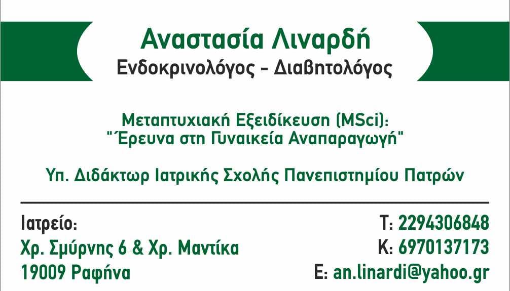 Στο ιατρείο της Ενδοκρινολόγου – Διαβητολόγου Αναστασίας Λιναρδή, παρέχονται εξειδικευμένες διαγνωστικές, θεραπευτικές και συμβουλευτικές υπηρεσίες που καλύπτουν όλο το κλινικό φάσμα της ενδοκρινολογίας.
